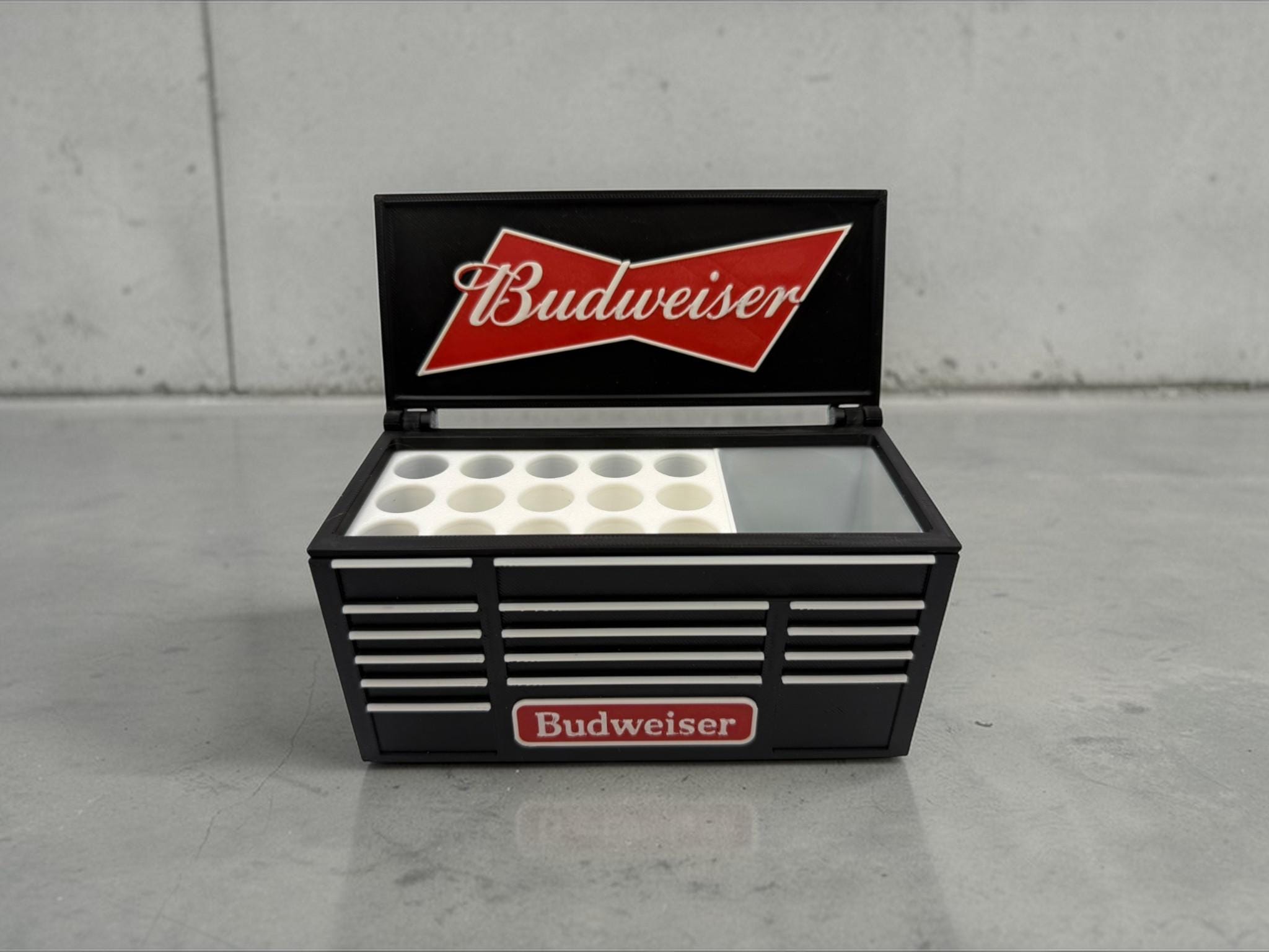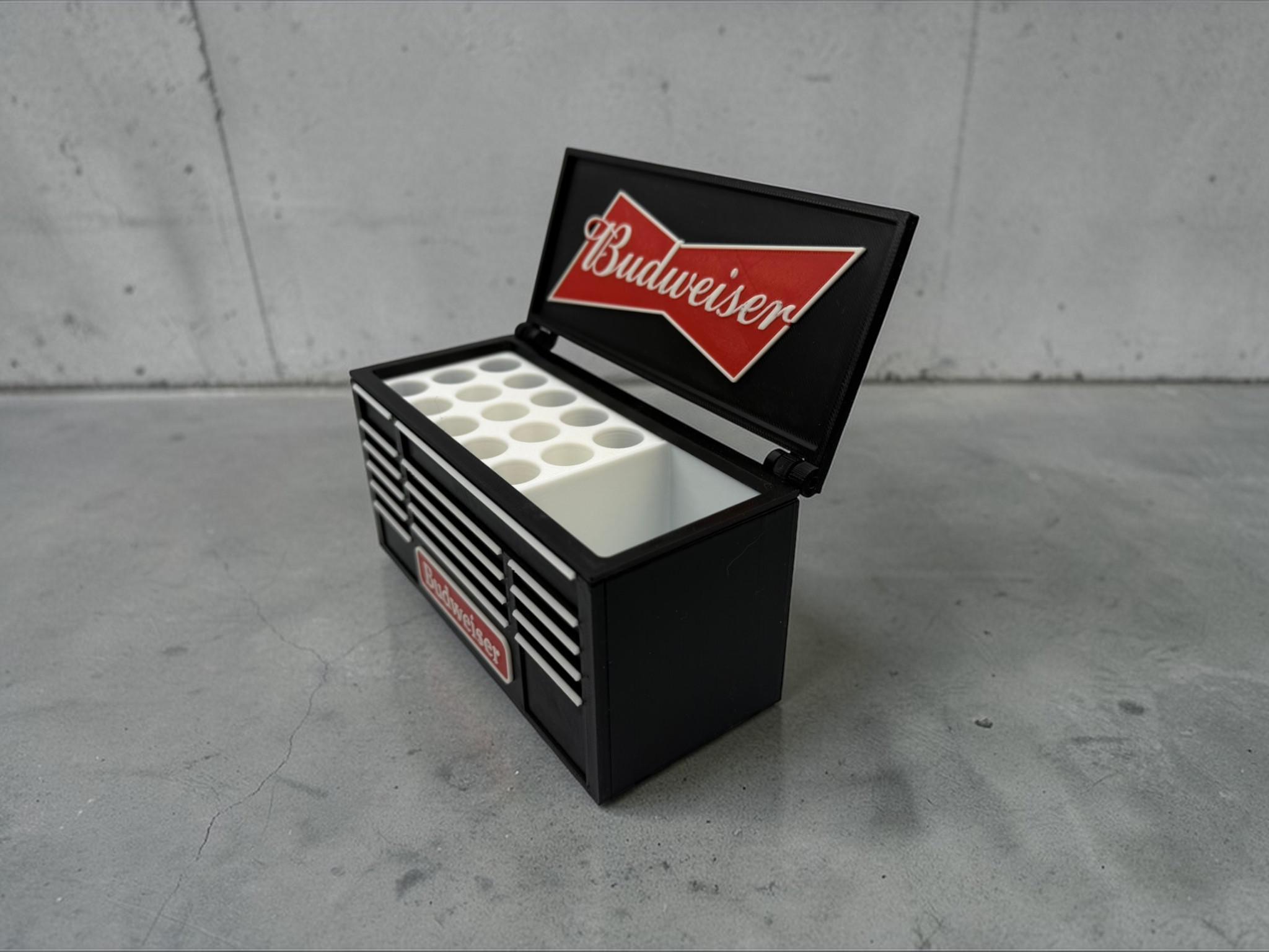 Add a bold, vintage-inspired touch to your workspace with this 3D Printed Budweiser-Inspired Desk Organizer & Pen Holder. Designed to resemble a classic cooler, this unique piece combines style and functionality, making it perfect for organizing your desk while standing out as a conversation piece.